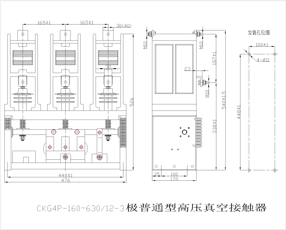 CKG4系列交流高压真空接触器适用于交流50-60Hz,额定工作电压至12KV,额定工作电流至630A的电气系统中,供直接或远距离接通和分断主电路之用。主要用于控制电动机、变压器、及容性负载等用电设备。特别适用频繁操作领域。具有体积小、重量轻的特点。采用当今国际流行的上、下布置组装式,有单级、二、三、四、五极,结构见图,拆装简易、使用维护方便,供用户选用。